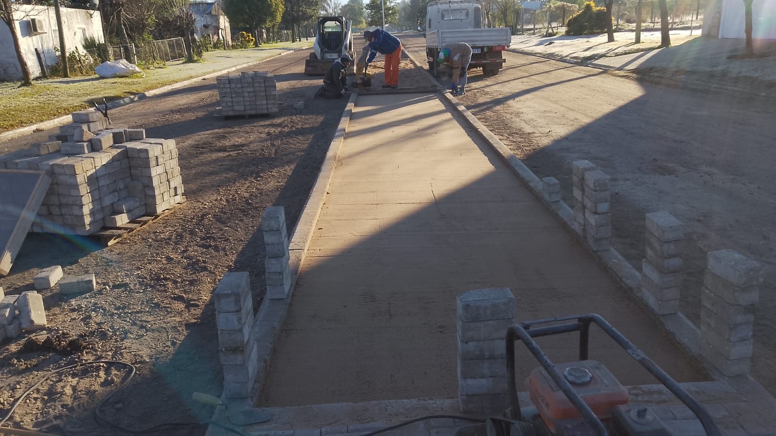 En el día de hoy se inició una nueva etapa en la obra de infraestructura que se lleva adelante sobre la Avenida 1° de Mayo en la localidad de Los Conquistadores. En esta fase, los trabajos consisten en la colocación de adoquines en el cantero central, como parte de una intervención que apunta a mejorar y embellecer una de las principales vías de circulación urbana.